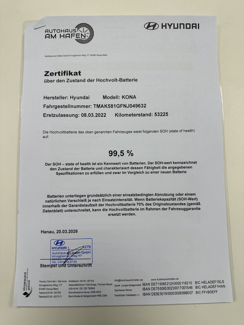 Hyundai KONA Prime Wärmepumpe/204PS/SOH99,5% Elektro 2WD Dachlackierung